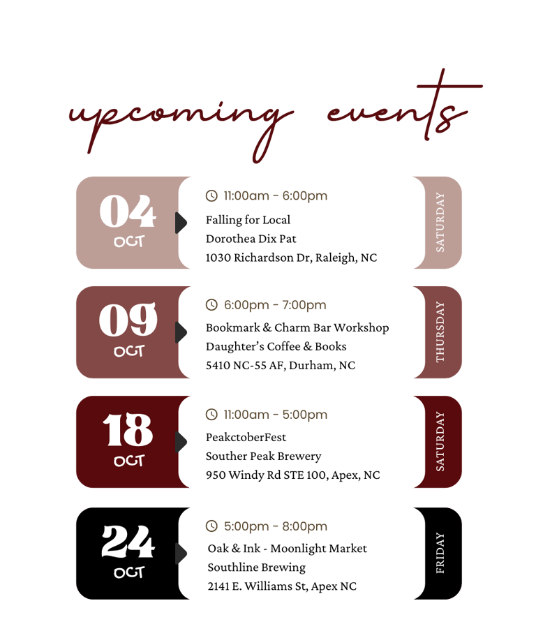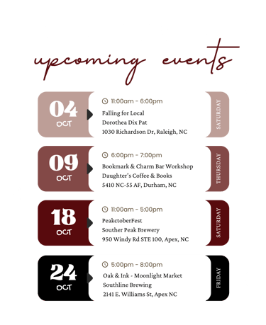 We are partnering with local businesses to bring a Bookmark & Charm Bar Workshop near you. During this workshop, you will be able to customize your bookmarks and choose a charmed chain from our charm bar to accessorize them.